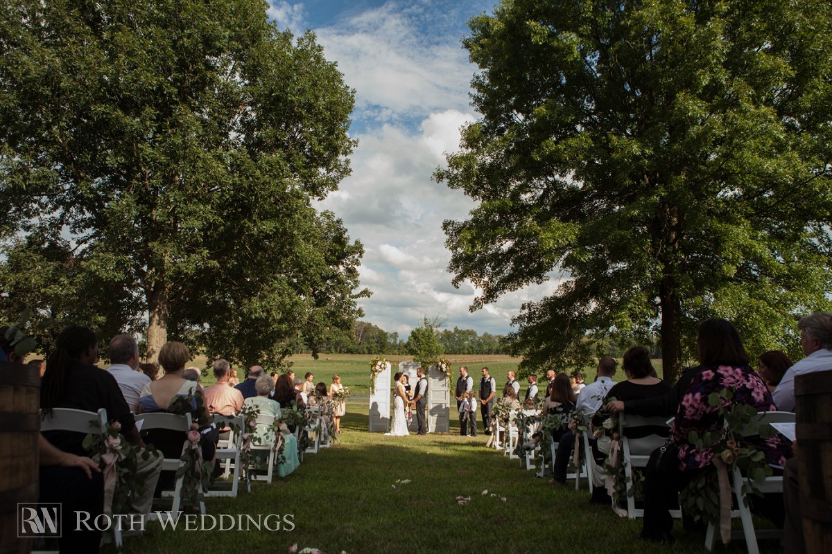 Having the privilege of shooting our third wedding at Brookside Farm, the venue never disappoints as far as rolling country views, farm animals, old historic buildings, and quaint locations like the covered bridge for portraits. We always know that whenever we’re invited back to Brookside, we will have no problem coming up with the perfect backdrop for pictures! Although the day was rather warm, the slight breeze made the hours we spent shooting around the property very enjoyable and Jenny and Chris’s wedding party a pleasure to work with, and so fun! Shooting at a venue where the ceremony and reception are at the same location always makes for a more relaxed wedding day, and we think that’s exactly what Jenny and Chris were planning for, and they very much succeeded!