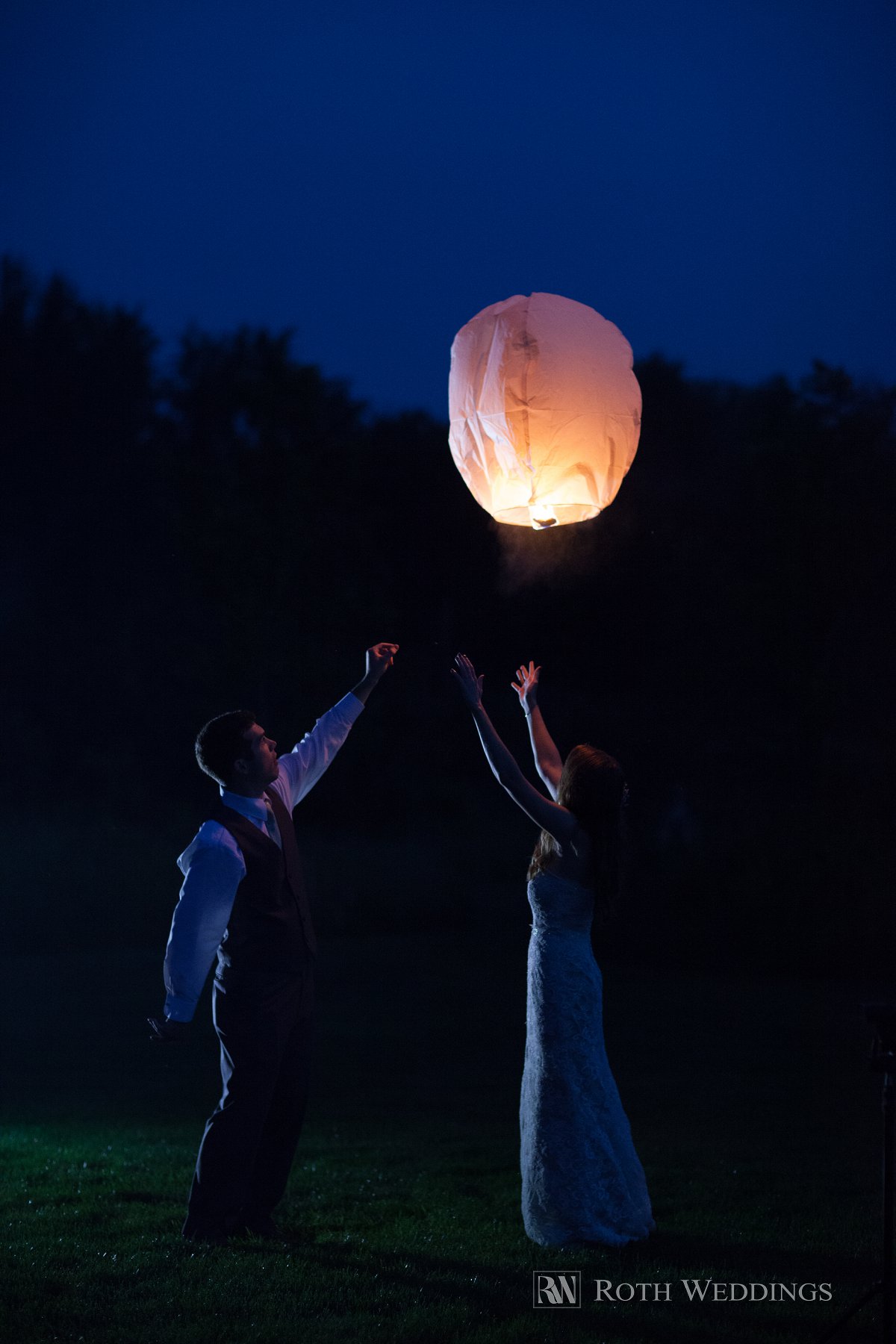After the ceremony, we had a few moments for pictures around Thorncreek’s gorgeous landscaped grounds. The sun was setting, and we made sure and use the last of the warm summer light before the sky covered itself in starlight. JoEllen had had a dream to set off lanterns during her reception in celebration of their wedding. Once the sun had set, one lantern was successfully lit and JoEllen and Matt launched it into the night sky before returning to the reception. Dinner was catered by their favorite restaurant, signature cocktails were brought out hours after dinner had ended, and everyone enjoyed Handels Icecream pops catered for a sweet treat. With every detail, JoEllen and Matt curated a perfect celebration to offer those people who had invested in them the most. It truly was a magical night.